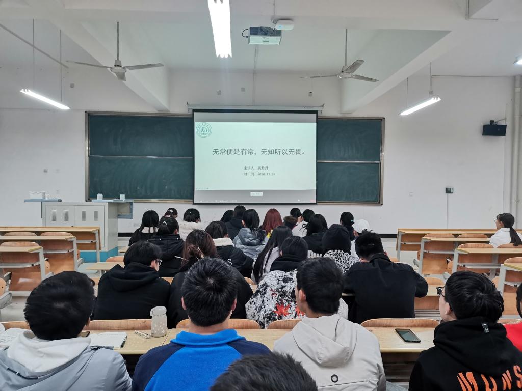 为发挥榜样示范作用,激励员工做好人生规划,激发学习斗志,树立远大理想,11月24日晚,英国365集团公司官网邀请优秀毕业生吴丹丹,在江北1204教室举办了“无常便是有常,无知所以无畏”为主题的线上报告会。2018、2019、2020级生物技术专业100余人听取了汇报,副经理杨芳主持报告会。