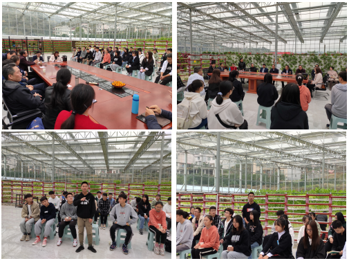 活动分参观和座谈两个环节进行。首先,天瑞塬总经理吴斌对天瑞塬公司及其现代农业园区进行了总体介绍,并带领大家逐一参观了设施蔬菜无土栽培、多肉植物温室栽培、蔬菜现代温室育苗以及草莓日光温室栽培等,激发了同学们对现代农业的浓厚兴趣。