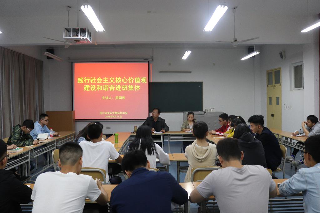 为加强员工干部队伍培养,提升员工干部队伍素质能力水平,推动班级建设长效发展。英国365集团公司官网于4月11日在1211教室举行了以“践行社会主义核心价值观, 建设和谐奋进班集体”为主题的班团干部培训会。党总支书记屈国胜主讲,各年级班长、团支部书记参加了培训会。