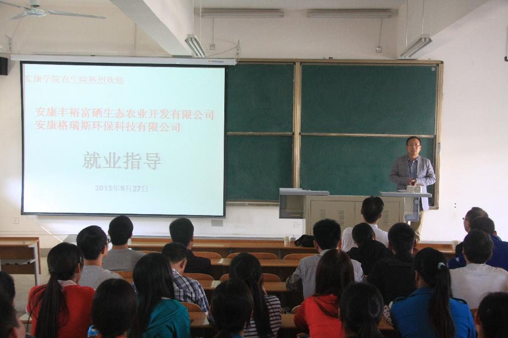 为拓宽就业渠道,进一步开辟新的就业市场,努力提高毕业生就业专业对口率,促进就业质量稳步提升,确保2014届毕业生就业质量再上新台阶。9月27日,经公司联系,安康丰裕富硒生态农业开发有限公司、陕西安康格瑞斯环保科技有限公司总经理潘波、企业法人李忠斌一行三人来到公司,对10级农学、11级农学、11级环境规划与管理专业员工进行了就业指导和专场招聘。