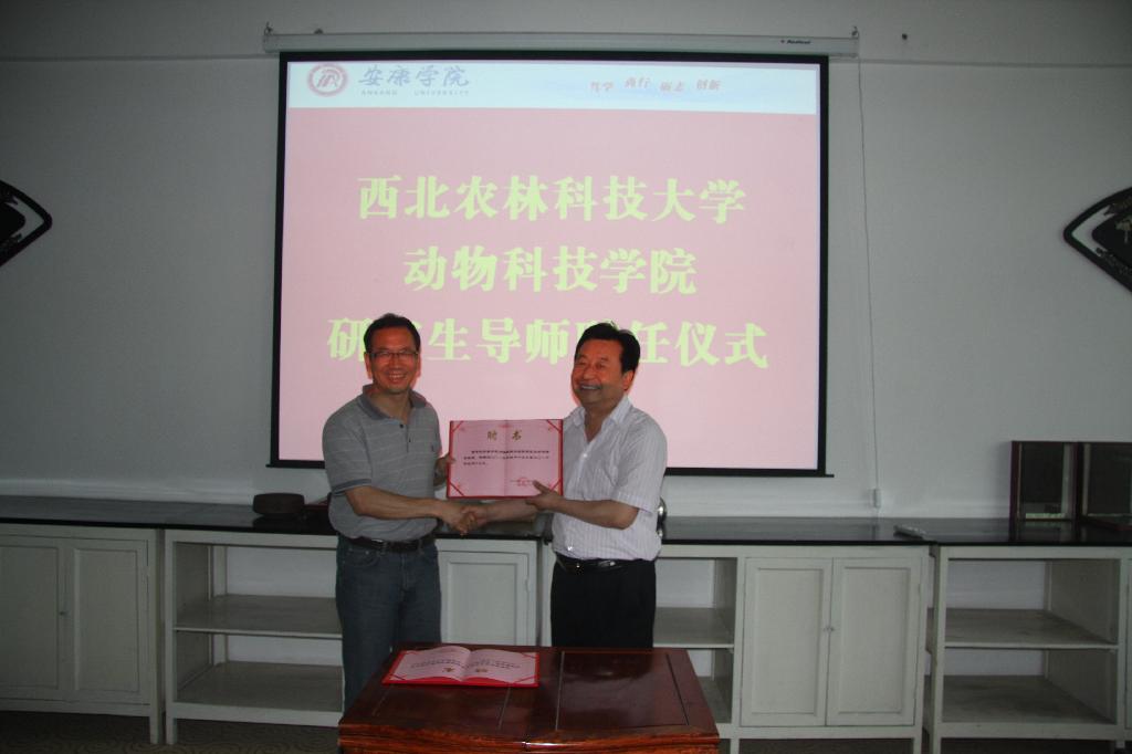 5月28日下午,西北农林科技大学动物科技公司研究生导师聘任仪式在公司农学与生命科学公司举行,公司刘强教授、权群学教授被西北农林科技大学聘任为研究生导师。