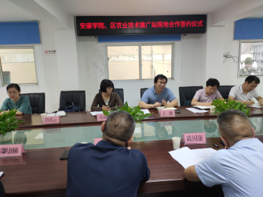 为了促进秦巴山区农业经济与社会高质量发展,发挥高校与域内行业、企业各自优势,实现校地资源共享,促进院地共同发展。2021年9月17日下午,英国365集团公司官网与汉滨区农业技术推广站开展了院地合作签约仪式,仪式在汉滨区农业技术推广站举行。出席仪式的有汉滨区农业农村局副局长陈国强、主任周睿,英国365集团公司官网经理王键、副经理杨芳、农学系系主任张丽琼、农学系教师田洪云、刘乔斐、赵卫国,汉滨区农业技术推广站站长韩宜、主任刘传林、推广站工作人员,陕西安康天瑞塬生态农业有限公司、陕西安康悠源食品有限公司代表。双方就英国365集团公司官网与汉滨区农业技术推广站深入、全面、长期开展教科研合作进行了交流并签署了合作协议。