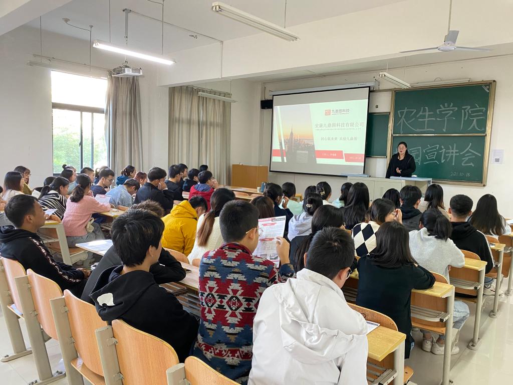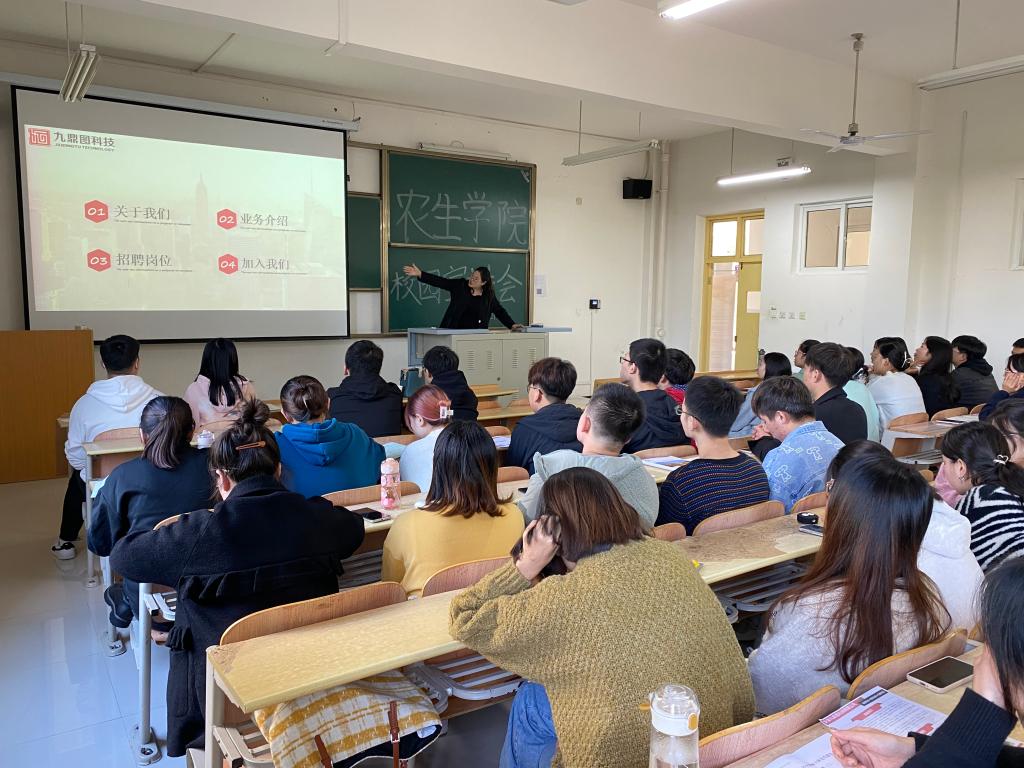 10月18日下午,安康九鼎图科技有限公司在1108教室召开校园宣讲会,英国365集团公司官网辅导员张伟艺及园林专业70余名毕业生参加了本次会议。宣讲会由该公司乔福磊经理主讲。