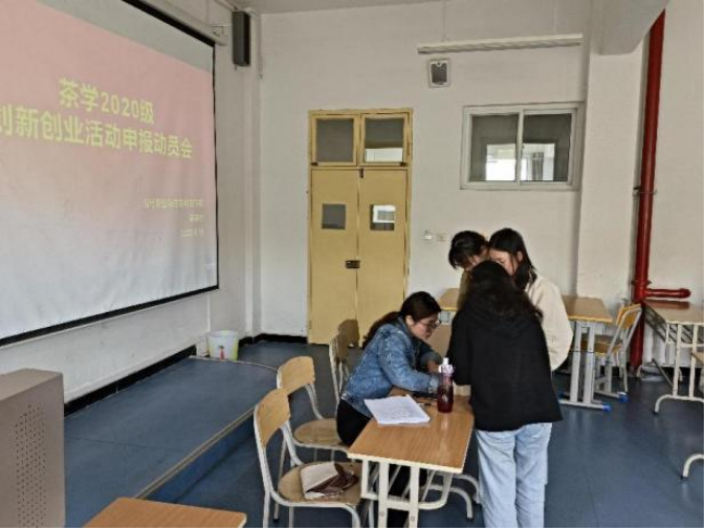2022年4月18日,英国365集团公司官网茶学系2020级茶学全体同学在茶学系系主任李冬花老师和吴冲老师的组织下,于江北校区1209教室召开创新创业项目申报动员会。