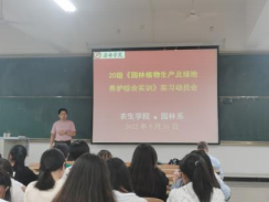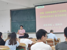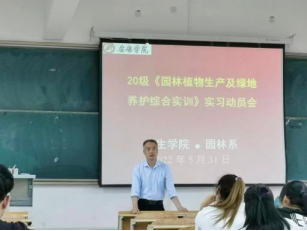 实践出真知。为了检验员工的理论知识学习效果和应用能力,培养和提高本科生的专业动手操作技能,按照人才培养方案,本学期16-18教学周安排了20级园林专业全体员工开展园林植物生产及绿地养护综合实训。为进一步做好员工实习前的准备工作,加强全体师生的实习安全宣传教育,推进实习工作能够圆满顺利进行,公司园林系于5月31日,在1204教室开展了“园林植物生产及绿地养护综合实训实习工作动员会”。