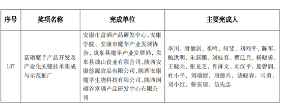 近日,2019-2021年度全国农牧渔业丰收奖获奖名单公布,公司魔芋科技创新团队李川教授主持,办学顾问崔鸣研究员及何斐博士、朱新鹏教授等团队成员共同完成的“富硒魔芋产品开发及产业化关键技术集成与示范推广”项目荣获2019-2021年度全国农牧渔业丰收奖三等奖。