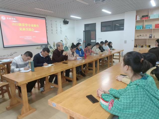 会后老师与同学互动交流,对于员工在学习、生活等方面的疑问进行详细解答。通过此次交流,促进了新生对茶学专业的理解,充分地调动了同学们对专业学习的积极性和主动性,为大一新生适应大学新环境奠定了基础。