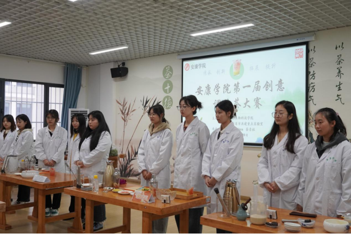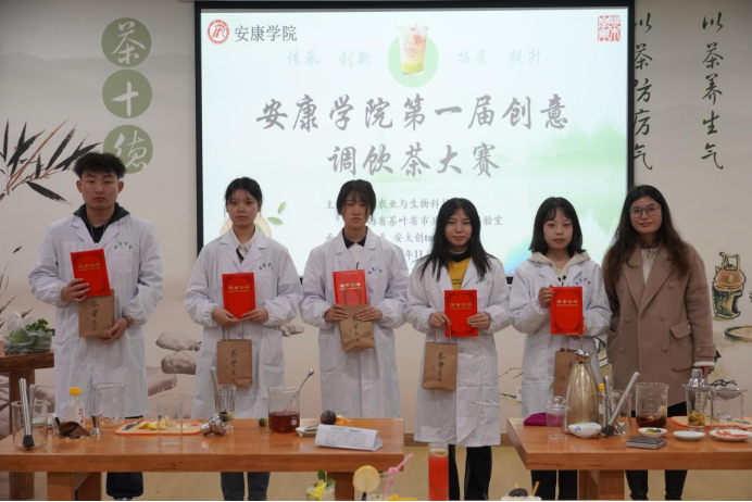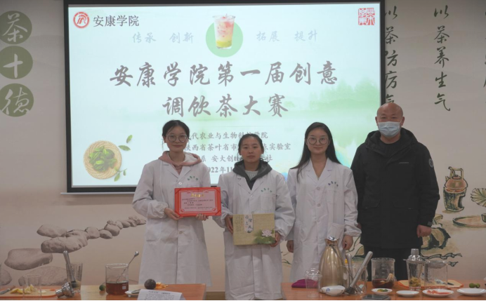 2022年11月20日上午,英国365集团公司官网第一届创意调饮茶大赛暨《茶产品开发》课程展示活动于产教融合大楼茶艺实验室举行。参加本次比赛的评委主要有公司党总支书记孙保本、茶学系主任李冬花、陕西省茶叶省市共建重点实验室办公室主任齐玉岗及茶学专业教师程晓梅、常娜、袁月和吴冲。