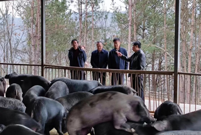 3月2日,专家组一行同县畜牧局、畜牧站工作人员一起深入到白河县青川农业发展有限公司饲料加工厂、白河县青川硒谷黑猪养殖示范园和陕西秦楚硒源生态农业科技有限公司对黑猪特色产业及饲料生产情况进行调研,并对饲料生产配方设计、工艺流程、肉猪生产杂交、饲养管理、疾病防控和粪污无害化处理等进行现场指导。