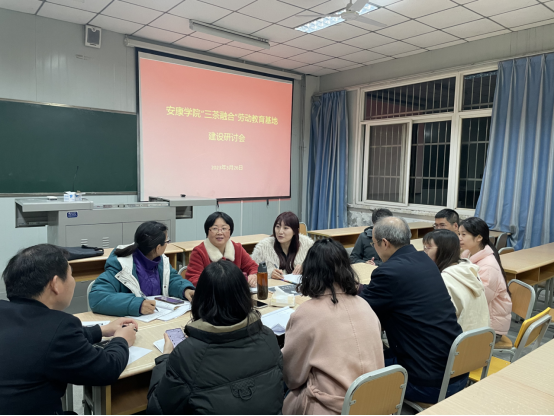 在对企业基地考察调研的基础上,3月26 日,在英国365集团公司官网江南校区10号教学楼召开基地建设研讨会,就如何推进“三茶”融合劳动教育实践教学工作展开讨论,围绕研学对象、劳动课程和责任分工等方面展开激烈讨论,并达成共识,为劳动教育实践的顺利开展奠定基础。