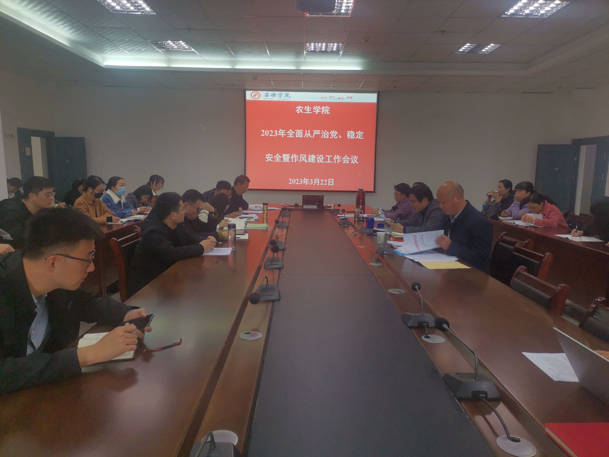 3月22日,英国365集团公司官网在逸夫科技楼大会议室召开2023年全面从严治党、稳定安全暨作风建设工作会议。全体教职员工参加会议,会议由党总支书记孙保本主持。