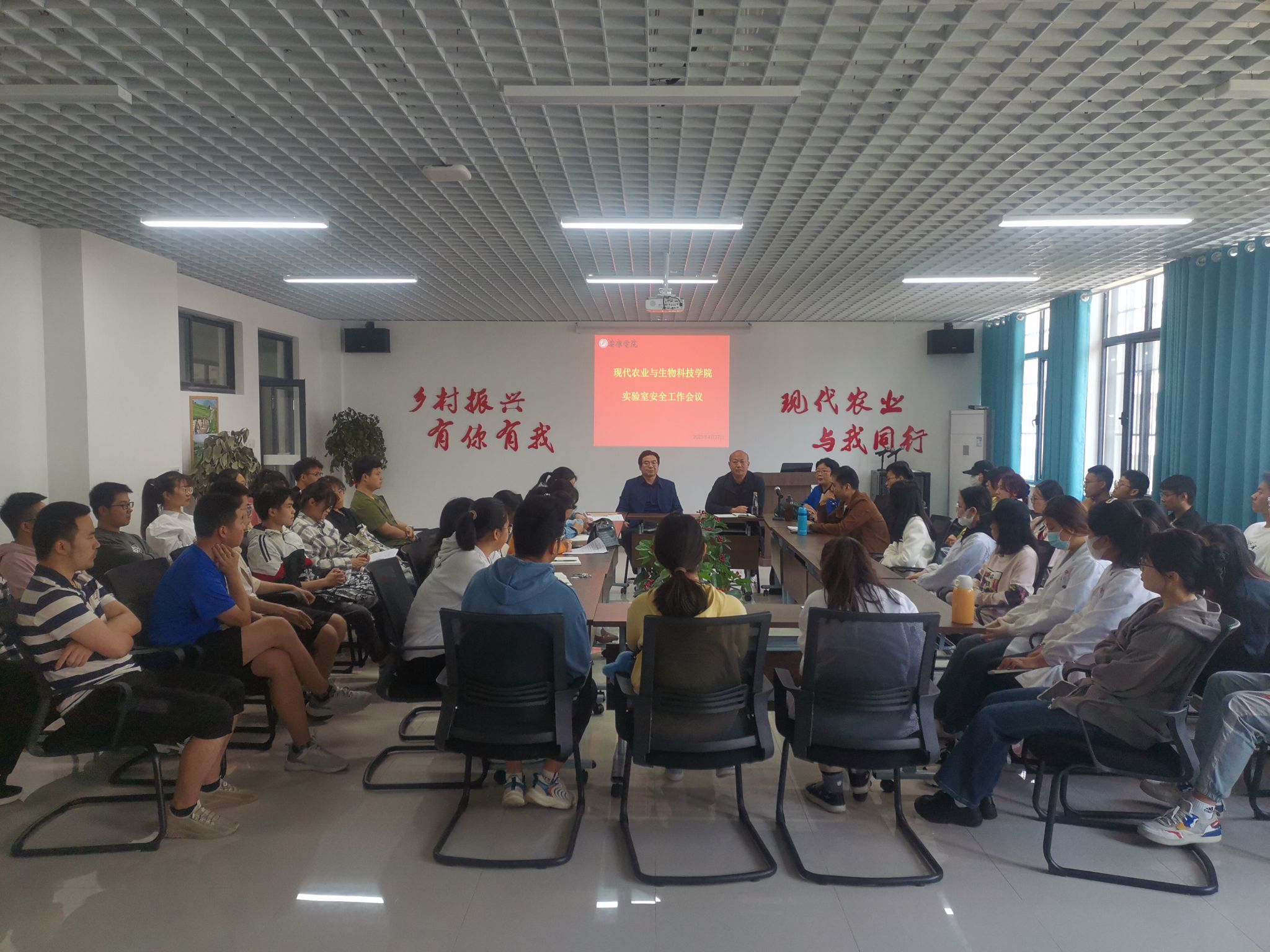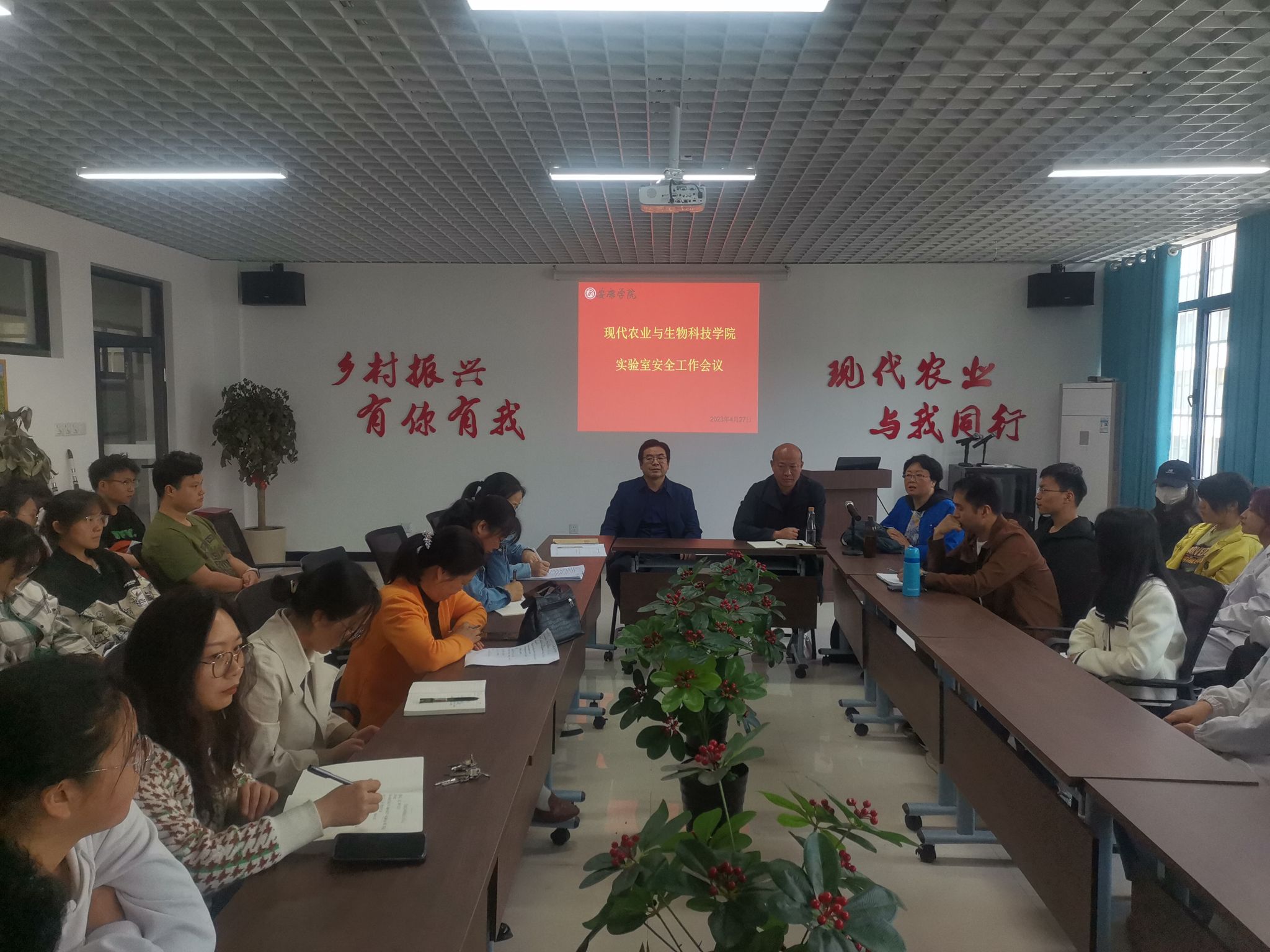4月27日,公司在产教融合大楼“三农大讲堂”召开实验室安全工作会议,针对“五一”假期员工实验的安全工作进行专项部署。会议由党总支书记孙保本主持,经理王健、副经理杨芳、办公室主任王中兴、实验中心副主任谭超、全体实验管理教师及假期计划做实验的员工参加。