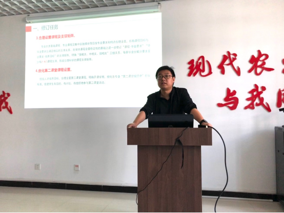 此次说大纲活动,首先由园林系系主任段展展给课程群教师解读了新版教学大纲修订的关键内容和编写规范,以及对培养方案修订的主要关注点。园林专业负责人袁海龙教授对培养方案修订以及新版教学大纲编写提出重要建议,要求课程群教师慎重对待此次培养方案的修订以及新大纲的编制,重点对课程教学目标与毕业要求的二级指标点的对应要做到准确合理。