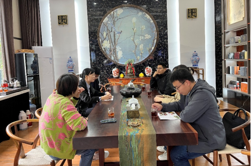 梁如博士作为服务企业的选派博士,结合自身的食品发酵专业方向和目前开展的研究工作做了交流。齐玉岗老师介绍了公司茶学重点实验室相关研究工作,并邀请宋小红总经理来公司为员工开展创业与就业方面的讲座。最后,宋总就企业目前急迫的产品开发提出了技术需求,以及提出建立协同创新中心和实践教学基地的初步意向。