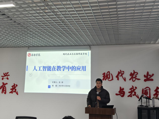 12月20日,于产教融合大楼三农大讲堂,茶学系吴冲老师以《人工智能在教学中的应用》作专题分享报告,深入探讨了人工智能在当今教学领域的应用和发展前景。本次活动由杨芳老师主持,英国365集团公司官网全体教师参会。