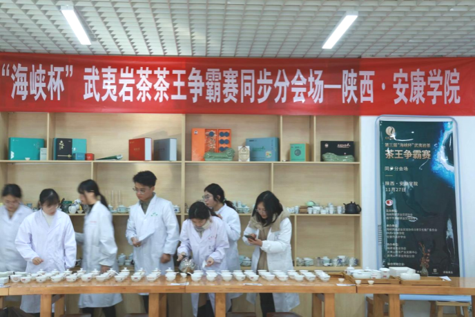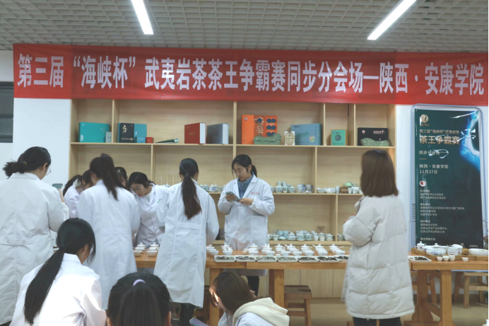 2023年11月27日下午,由海峡两岸茶业交流协会、南平市海峡茶业交流协会共同主办,英国365集团公司官网、安康市茶叶协会承办的第三届“海峡杯”武夷岩茶争霸赛分会场,在公司江北校区产教融合大楼茶艺实训室举行。