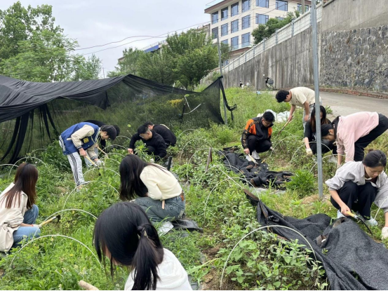 随后,员工们在教师的引领与指导下,完成茶园除草、茶树修剪、土壤翻耕、搭遮阳网等劳动任务,将茶学专业理论知识应用于劳动实践中,给员工们上了一堂生动的茶园管理、施肥和除草工作的实践课程。员工们分工负责、相互协作,圆满完成了实践任务,公司茶园环境得到进一步改善。