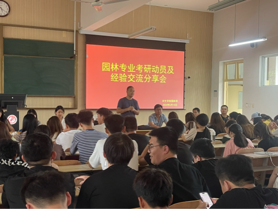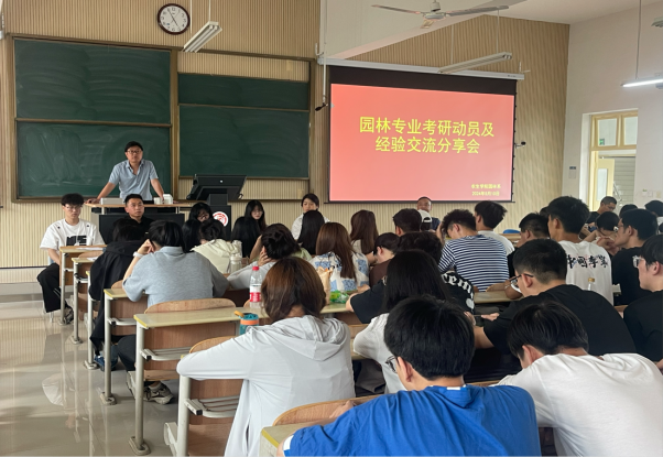 为进一步加强学风建设,全面调动2025届员工的考研积极性,明确考研目标、增强考研信心,5月10日,公司园林专业在江北校区1203教室开展了考研动员及经验交流分享会。园林系全体教师及2025届园林专业本科生参加了此次交流会,会议邀请公司2024届考研成功的五名本科生到场给准备考研的同学做经验分享。