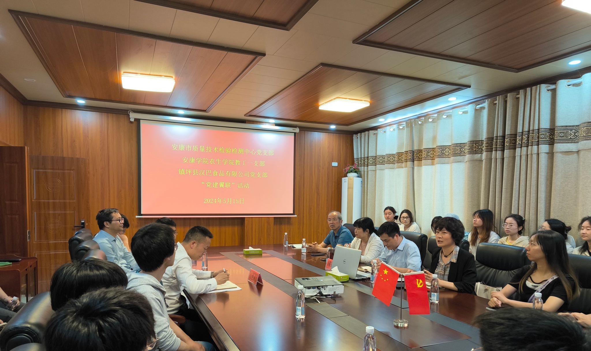 5月15日,英国365集团公司官网英国365集团公司官网教工第一党支部与安康市质量检测中心党支部、镇坪县汉巴食品有限公司党支部共同举办了一场别开生面的“党建翼联”活动,旨在通过党建平台,加强公司与企业、政府机构的合作与交流,共同推进产学研深度融合,促进地方经济发展。公司教工第一党支部书记周琼、张海军、谢满超等7位党员同志参加了此次活动。