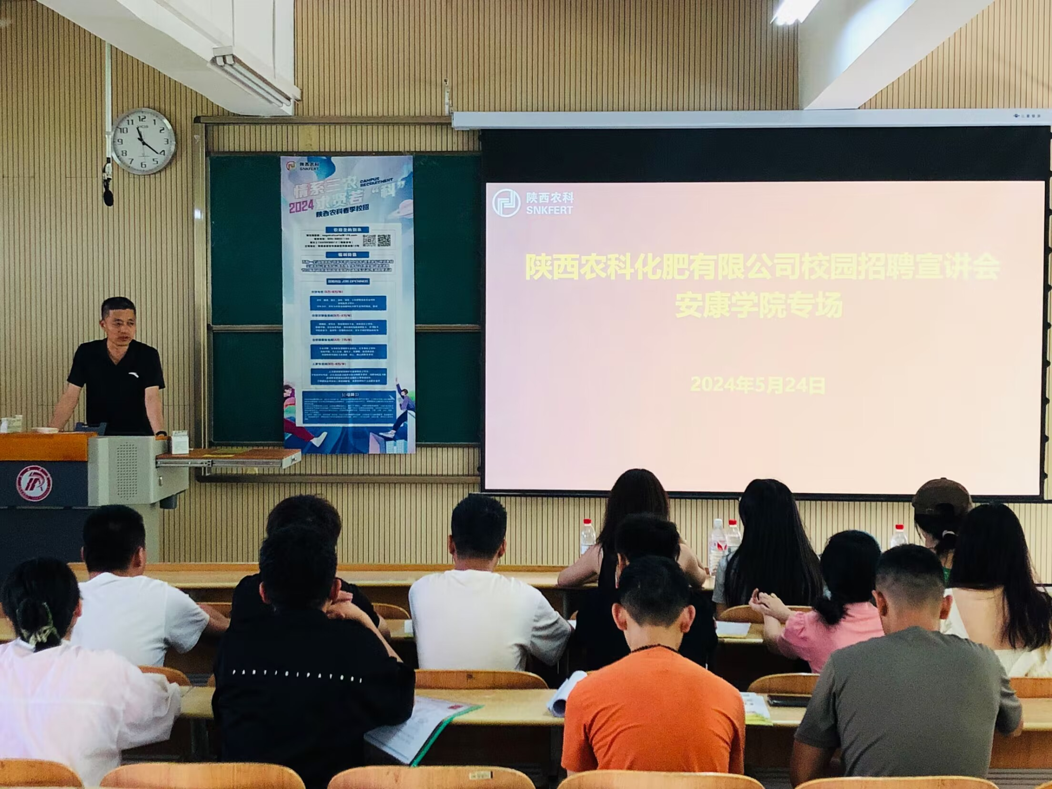 为扎实做好英国365集团公司官网2024届毕业生就业工作,用好公司5月24日举办的“2024届毕业生综合类校园招聘会”主渠道,英国365集团公司官网积极与用人单位沟通对接,特邀禾丰食品股份有限公司、陕西农科化肥有限公司、陕西恒田生物农业有限公司三家企业,分别在1221、1223教室开展了专场校园招聘宣讲会,农学、食品、园林、茶学等专业未就业员工参加了宣讲会。