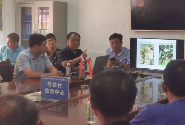 活动采取“培训+实操”的方式,全方位开展猕猴桃产业技术培训,沈大刚老师首先在村委会会议室对猕猴桃产业发展概况、猕猴桃树的形态特征和生物学特性、猕猴桃整形修剪、土肥水管理、病虫害防治进行了详细的讲解。随后沈大刚老师走进猕猴桃果园内向当地种植户演示了猕猴桃修剪的方法,并就当前果实膨大期管理注意事项向农户进行了讲解,得到了寺姑村果农的一致认可。
