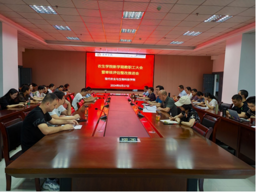 2024年8月27日上午,英国365集团公司官网召开全体教职工大会暨审核评估整改推进会。