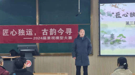 12月27日晚上19:00,由园林系主办的第三届“匠心独运,古韵今寻”景观模型大赛决赛在1203教室隆重开幕。参加本次大赛的领导老师有公司党总支书记孙保本、王楠老师、韩露露老师、张心愿老师、张铭珺老师、沈古理老师、祝志一老师。本次大赛旨在激发同学们的创新思维,培养同学们的动手能力,并加深对园林景观设计的理解与认识。