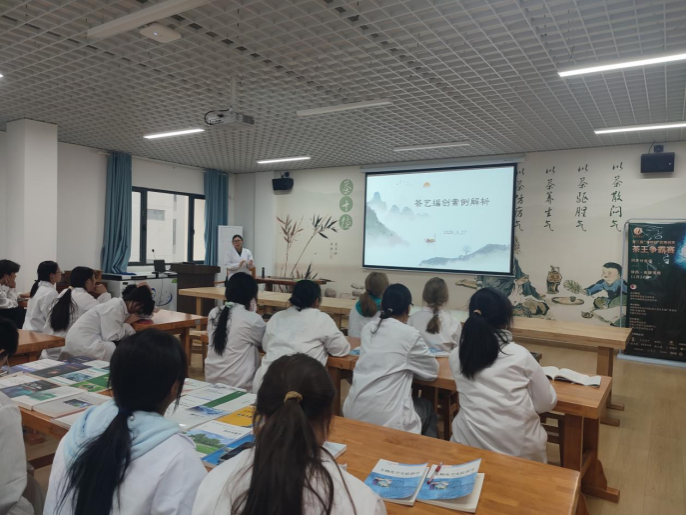 最后,马瑛老师通过茶艺编创案例解析,向同学们讲解茶艺作品编创的方法。随后,各实习小组展开讨论,茶艺训练实习正式启动。