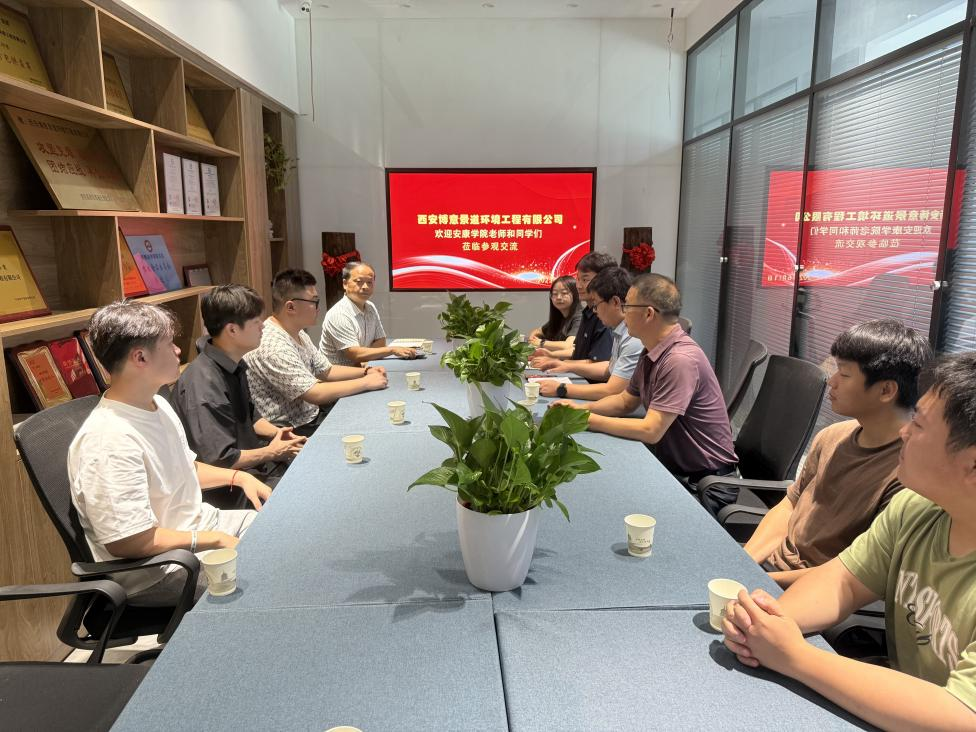 团队先后走进陕西唐景园林集团有限公司、西安博意景道环境工程有限公司、西安鼎泰兴农有限公司及陕西中科伟业科技集团有限公司。每到一处,师生深入企业项目现场与办公环境,直观感受企业文化与工作实景。座谈会上,企业负责人详细介绍了发展现状、核心业务及人才需求,双方就园林行业发展前沿、校企协同育人、实习基地共建及毕业生招聘等议题展开务实探讨。多家企业现场向员工发出实习邀约,并提供了针对性的就业岗位信息