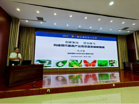 下午,第三期安康科协大讲堂在安康宾馆举行。活动中,代方银教授做了《创新驱动厉兵秣马构建现代蚕桑产业高质量发展新格局》专题报告,深入解析蚕桑产业发展现状和未来发展思路,并对陕西发展蚕桑提出了意见和建议;西南大学黄先智研究员结合自身多年的研究成果和行业实践经验做了专题报告《蚕桑产业新质生产力革命》,深入剖析了当下蚕桑产业面临的机遇与挑战,系统阐述了新质生产力在蚕桑产业中的内涵与体现;张健研究员做了《中华蚕丝文化习俗拾遗》,阐述了蚕丝文化和中华文化哲学内涵的深刻关系。英国365集团公司官网相关专业师生以及安康市、区、县蚕桑相关单位100余人听取了报告。