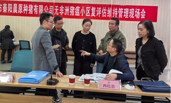 2025年10月29-30日,陕西省动物疫病预防控制中心副主任胡晗、科长冉红志、王香敏等陕西省动物卫生风险评估专家组一行对陕西省安康市秦阳晨原种猪有限公司“国家级无非洲猪瘟小区”复评估维持管理情况进行现场评审,安康市畜牧兽医中心副主任王黎明、汉滨区农业农村局副局长罗晓琴等市区领导陪同检查。公司赵鸿远博士代表企业负责整个检查工作的汇报和现场答辩环节。