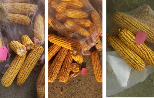育种科研亦是一场与时间赛跑、与自然博弈的“马拉松”。每一组数据的获取、每一个性状的筛选,都离不开科研人员田间地头的坚守。在前期大量基础研究基础上,解松峰团队通过基因型分析与表型鉴定相结合的方式,从数百组杂交组合中筛选出40余份具有潜在应用价值的优势组合。今年,团队在紫阳、恒口、旬阳、汉滨等秦巴山区典型生态区布局多点田间试验,全面验证组合在不同土壤、气候条件下的适应性。试验期间,研究区域遭遇持续1个多月的强降雨天气,极端环境反而成为品种抗逆性的“试金石”——多个优势组合表现出优异的抗逆性与丰产性:株型紧凑度高,抗倒伏能力显著优于对照品种;果穗发育饱满,穗大粒满;对玉米生产中常见的穗发芽、茎腐病、大斑病等主要病虫害表现出强抗性。目前,编号为191、658、21的3个优势杂交组合脱颖而出,具备进入下一阶段品种比较试验与区域试验的条件。