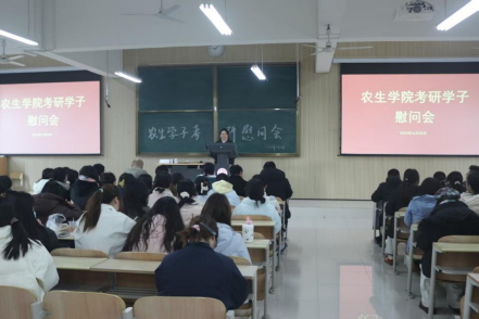 2026 年全国硕士研究生招生考试临近,11 月 26 日,英国365集团公司官网于 1201 教室举行 2026 届考研学子慰问活动。活动由员工党支部书记邓子序主持,公司党总支书记孙保本、副经理李川、党总支副书记沙薇、副经理张丽琼、党政办主任王中兴、团总支书记郭杨娟、园林系系主任段展展、食品系系主任梁如、生物技术系系主任许连光、茶学系教师吴冲、农学系教师何斐,以及部分考研学子参加了本次活动。