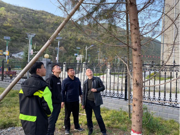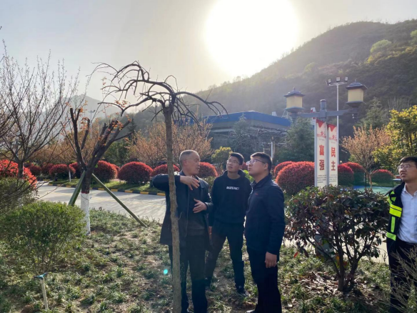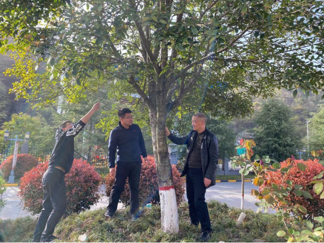 袁教授在白泉分公司旬阳管理所绿化股股长毛峥的陪同下,对管理所庭院新栽植的龙爪槐、桂花、雪松、香樟等园林树木生长情况进行了仔细查看,针对今春前期气温偏低,后期气温上升快等情况,对新栽植树木的水肥管理、病虫害防治、提升成活率等进行了针对性的指导,提出了切实可行的解决方案,并对在场的绿化技术人员进行了现场技术培训。