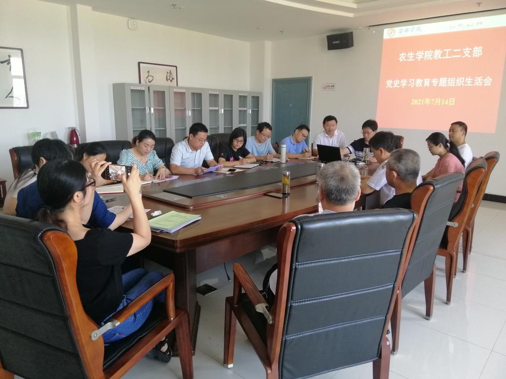 专题组织生活会上,支部书记段展展对教工二党支部半年来开展党史学习教育的情况进行了汇报,对存在的问题和整改措施做了说明。随后,支部全体党员逐一发言,汇报了自己学习习近平总书记“七一”重要讲话、学习党史的感悟和体会,同时结合教学、科研和社会服务等工作,从自身实际出发认真检视问题、查找差距,对存在的问题提出了整改措施,并以求真务实、坦诚相见的态度,认真开展了批评与自我批评。最后,段展展进行了会议总结,他指出本次党史学习教育专题组织生活会开的非常成功,达到了预期目的,并对大家取得的成绩进行了充分肯定,对存在的问题提出了整改建议。