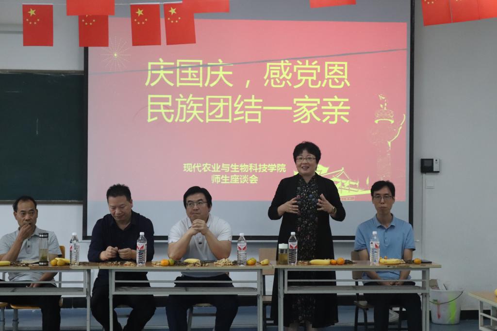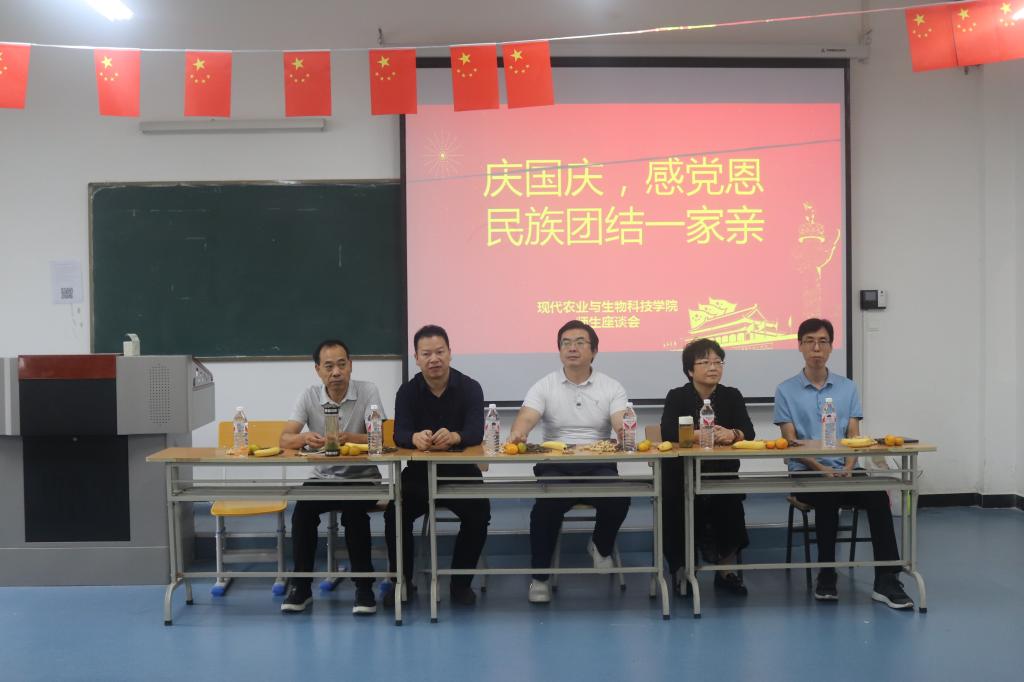 为激励农生学子与祖国共成长,厚植爱国爱党情怀,国庆节当日上午,英国365集团公司官网在1221教室开展“庆国庆、感党恩,民族团结一家亲”师生座谈活动。来自山东、四川、广西、西藏等省市40余名同学参加了座谈会。经理王健、副经理杨芳、办公室主任王中兴及辅导员莅临现场进行了交流。辅导员杨曼主持活动。