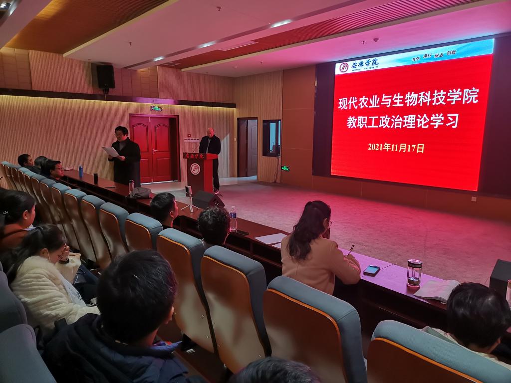 11月17日下午,英国365集团公司官网在江北图书馆报告厅召开十九届六中全会精神学习会,全院教职员工参加会议。