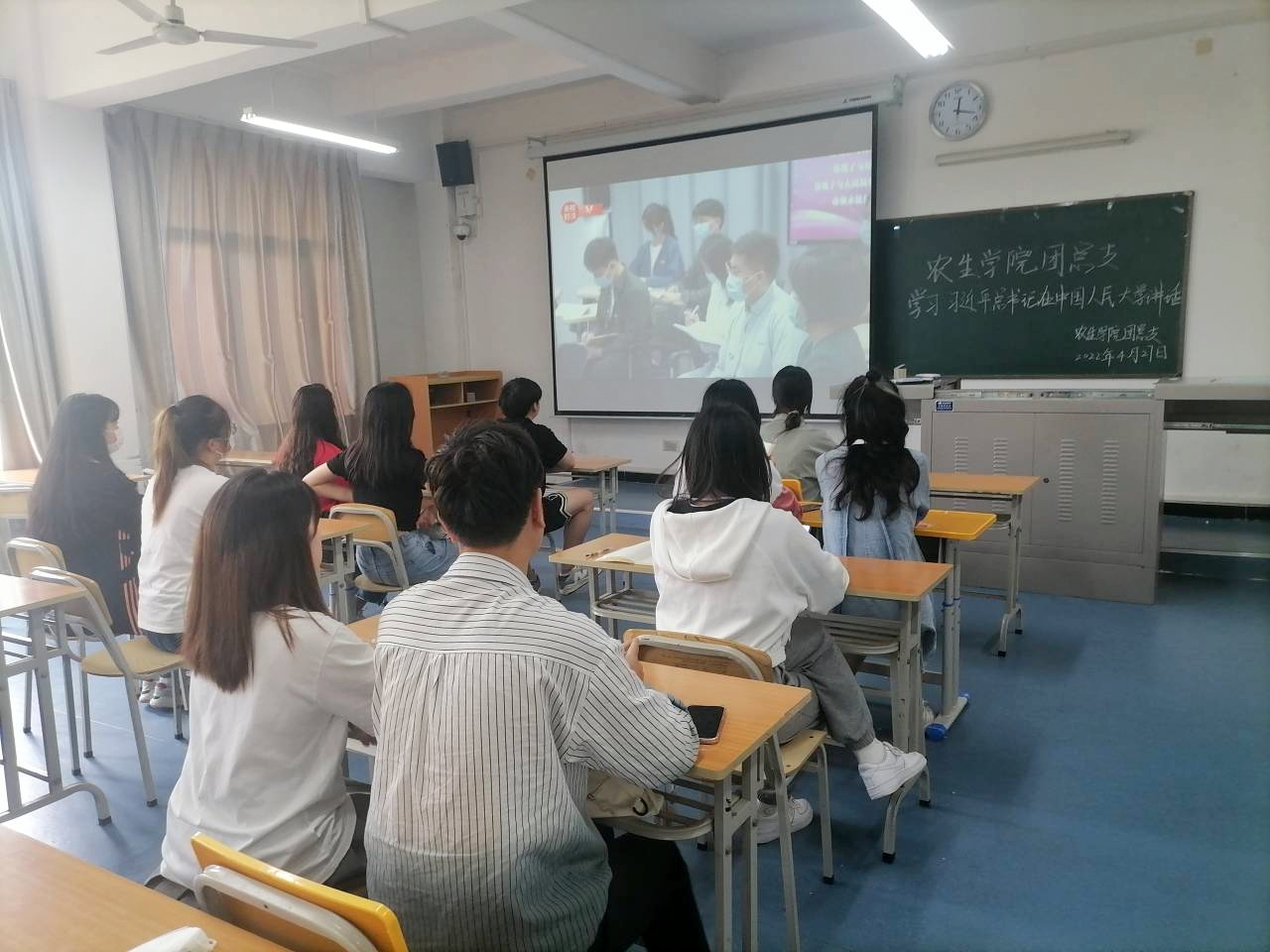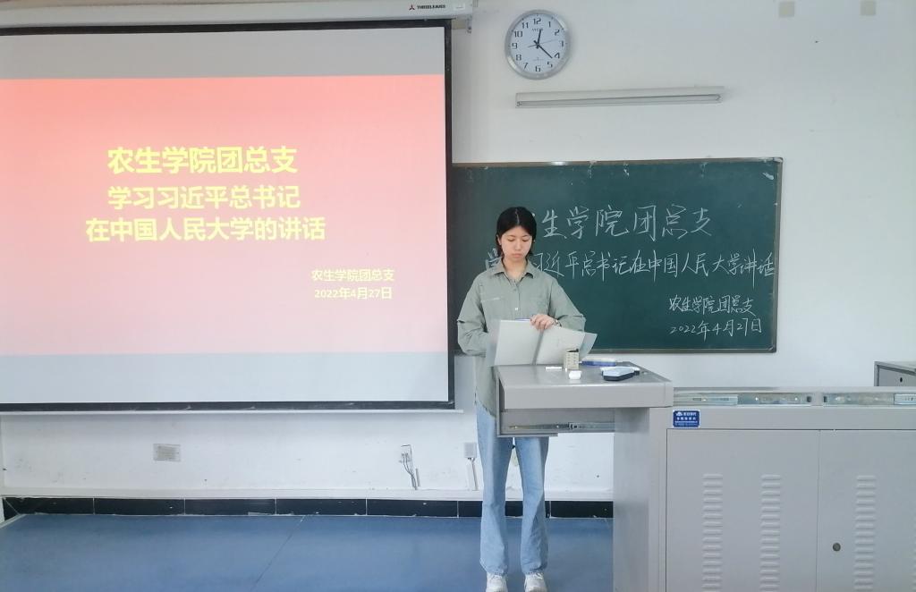 团员青年代表、2021级食品科学与工程专业杜雨芯谈到:“在日新月异、朝气蓬勃的新时代,习近平总书记对广大青年寄予厚望,作为当代青年,我们定不负韶华,脚踏实地走好青春的每一步,立志为人民、为国家做贡献,争做堪当民族复兴重任的时代新人。”