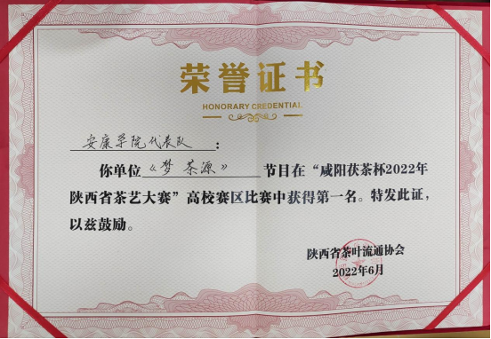 6月9号下午,英国365集团公司官网茶艺代表队参加了由陕西省茶叶流通协会和咸阳市供销合作社共同主办的“咸阳茯茶杯2022陕西省茶艺大赛”(高校组),由马瑛老师指导的参赛作品《梦茶源》荣获第一名直接晋级决赛。